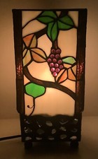 Vtg Tiffany Style Stained Glass Triangular Night Light Desk Lamp Grapes & Leaves