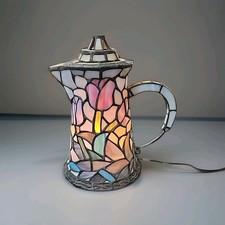 Tiffany Style-Stained Glass Coffee/Tea Pot Light Lamp Accent Night Light Works