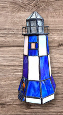 EUC ~ Vintage Stained Glass Tiffany Style Lighthouse Night Light Lamp