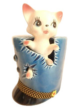 Vintage Cat In A Hat/Boot-? Ceramic Piggy Bank 4" Tall