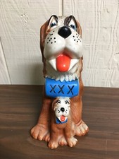 PRESSMAN TOY CORP VTG 1975 LARGE SAINT BERNARD DOG & PUPPY COIN BANK W/ STOPPER