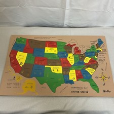 1950s Vintage Wood Puzzle Map of the United States Sifo Toys USA