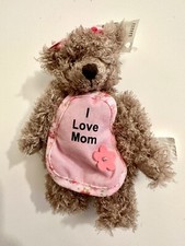 Vintage Y2K RUSS Berrie Teddy Bear “I Love Mom” Apron Soft Plush Moveable 5” NWT