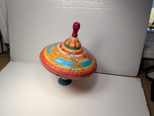 Vintage Tin Litho Spinning Top Toy Astronaut And Spaceship Theme 1960’s