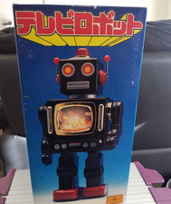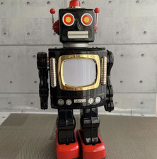 Metal House Tin TV Robot Walking Sound and Screen Display Toy Japan W/Box Used