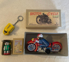 Vintage Sanko Wind-Up Tin Toy Set 3pcs Turn Action Bike & Robot Japan
