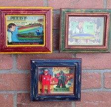 Tin Toy Shadow Box Displays – Speed Boat, Dirigible, Atomic Robot –...