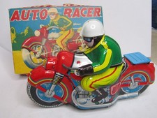 Vintage 1950's Tin Litho Auto Racer Motorcycle Friction Toy Japan Original Box