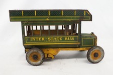 Vtg 1920s 1930s Strauss Inter-State Bus Tin Truck Toy Wind Up Litho Original