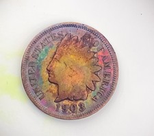 1903 Indian Head Cent Penny US Coin Rainbow Toned