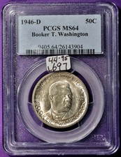 1946 D 50c Booker T. Washington U.S. Commemorative half dollar 90% silver