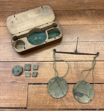 Antique Miners Prospectors Portable Gold Scale w/Box/5 Weights/Gold Scale