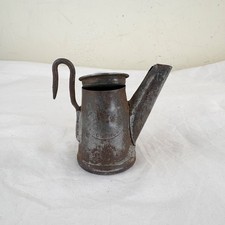 ANTIQUE TIN 3” TEAPOT LIDDED SOLDERED MINERS OIL LAMP WITH WICK PRIMITIVE. T1