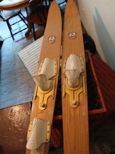 Vintage Pair Of 66" Omega 1 Lake Region International Wood Water Skis / Shot-Ski