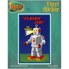 Flashy Jim Vinyl Sticker Vintage Style Robot Toy Bumper Laptop Decal 3 x 4.6