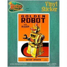 Golden Robot Vinyl Sticker Glossy Vintage Style Toy Bumper Laptop Decal 3 x 4.6