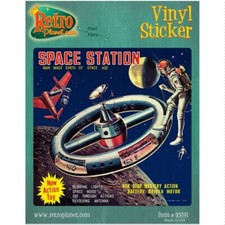 Space Station Vinyl Sticker Vintage Style Tin Toy Bumper Laptop Decal 4.4 x 4.4