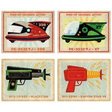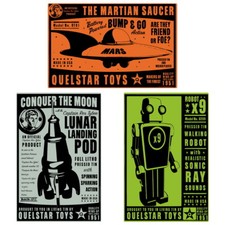 Quelstar Tin Toys Sci-Fi Wall Decal Set Vintage Style Home Decor Bundle