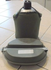 VINTAGE CIRCA 1960 REMCO USMC OD TOY MESS KIT / CANTEEN & COVER W/ UTENSILS