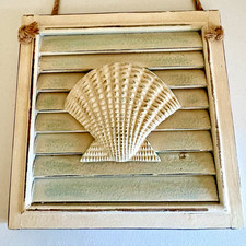 Antique Distressed Beach Farmhouse Wall Hanging Shell 12"Sqre Wood Decor Vintage