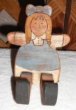 WOODEN DOLL~Vintage~Handcrafted~Movable Legs~Primitive Country Toy~8" By 4"