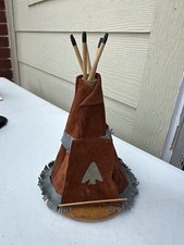 Handmade Leather Indian Teepee High Wood Base/Bottom. Vintage Tourist, toy
