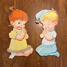1950s Vintage Praying Children Wall Decor Girl Boy Retro Religious Dolly Toy Co