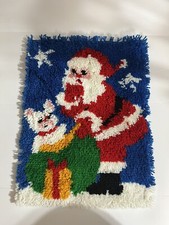 Vintage Christmas Santa With Toy Bag Wall Hanging Completed Latch Hook 18”x24”