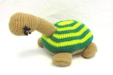 Vintage Crochet Stuffed Turtle 12" Handmade Soft Toy Green Striped Shell