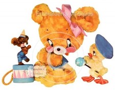 Vintage Image Shabby Teddy Bear With Duck and Drum Toy Waterslide Decals AN670