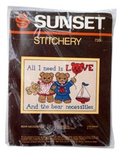 Vintage Sunset Stitchery Bear Necessities 735 Embroidery Kit 5" X 7" Teddy Bears