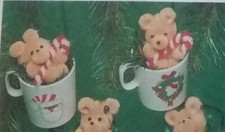 Vintage Mary Maxim Teddy Bears in Cups 8 Ornaments Pom Poms Easy Craft Kit