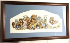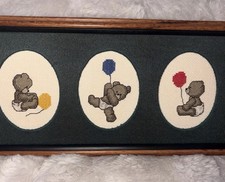 Vintage Cross-stitch Teddy Bears Matted & Framed 20.5”W x 12”H