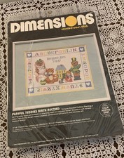 Vtg 1986 Dimensions Cross Stitch Kit 3616 Brand New Teddy Bears Birth Record