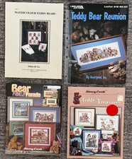 Vintage Lot of 7 Cross Stitch Patterns Leisure Arts, Dimensions ETC. Teddy Bears