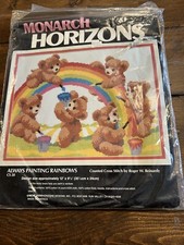Vintage Monarch Always Painting Rainbows Teddy Bears Counted Cross Stitch Kit