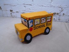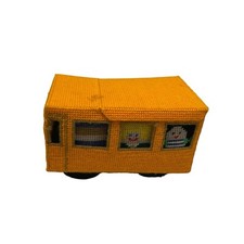Vintage Needlepoint Yellow School Bus Toy Yellow 3D Handmade