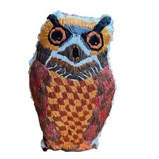 Vintage Stuffed Toy Crewel Owl - Embroidered by Hand Boho