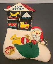 Vintage Storybook Felt Christmas Stocking Sequins 9216 Santa Toy Shop