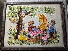Vintage Needlepoint "A Toy-Themed Picnic Scene" - Framed