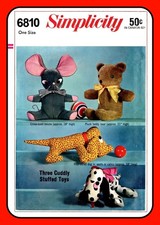 Vintage 1966 STUFFED Animal Pattern DOG Teddy BEAR Mouse Toy Simplicity 6810