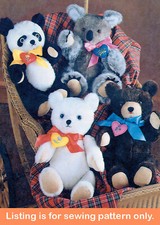 SEWING PATTERN Stuffed Animal Toy 1980s 80s Vintage Teddy Bear Panda Koala 9870