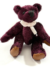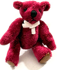 VINTAGE MINIATURE HANDMADE JOINTED MERLOT PLUSH TEDDY BEAR 2 1/8”