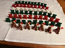 Vintage Mini Flocked Teddy Bears Lot of 67 Miniature Red Green White Brown