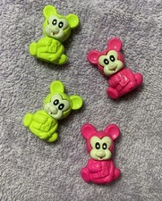 Vintage Flocked 1” Miniature Bears- Pink, White, Baby Blue And Green