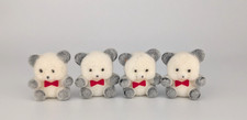 4 Vintage Dollhouse Miniature Flocked Fuzzy TEDDY BEARS White & Gray Red Tie 1"