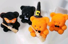 Vintage 12 Mini Flocked Teddy Bears Orange Black Witch Wizard Halloween 1"NOSJ17