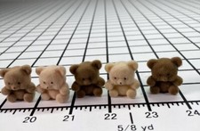 Lot of 5 Vintage Tiny Miniature 1" Flocked Fuzzy Teddy Bears Craft Brown Beige