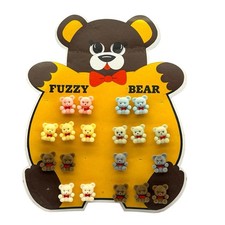Lot of 19 Vintage Fuzzy Bear Flocked Teddy Bear Pins Brooch & Store Display Card