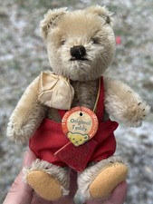 Vintage Steiff Jointed 6” Brown Steiff Bear Original Steiff w/ Red Suspenders